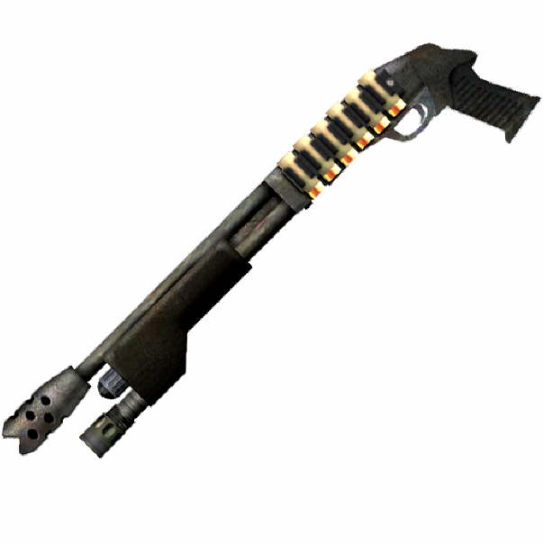 Eine Schrotflinte die extra umgebaut wurde um Verschlossene Türen zu öffnen (Aufzubrechen).Mit Pistolengriff und Mündungsfeuer- und Rückstoßdämpfer